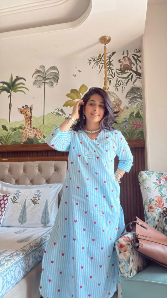 Blue Heart Cotton Co-ord Set Product Code : D131BLUEHEART