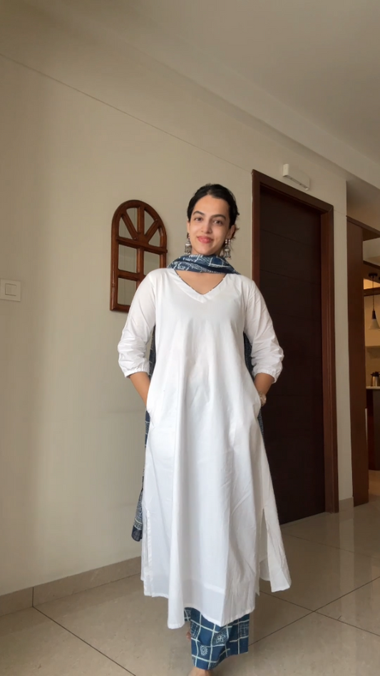 Classic White & Indigo Kurta Set with Duppatta (With Lining) Product Code : D132