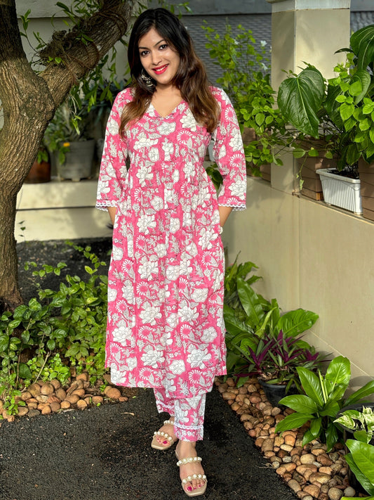 Jaal Block Printed Pink Co-ord Set