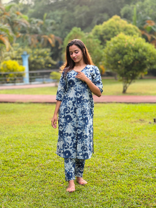Blue Floral Print Cotton Co-ord Set