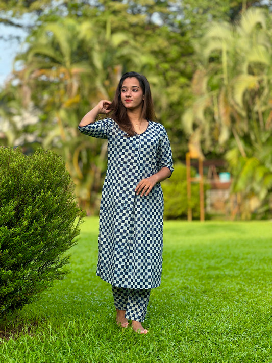 Blue Check Print Cotton Co-ord Set