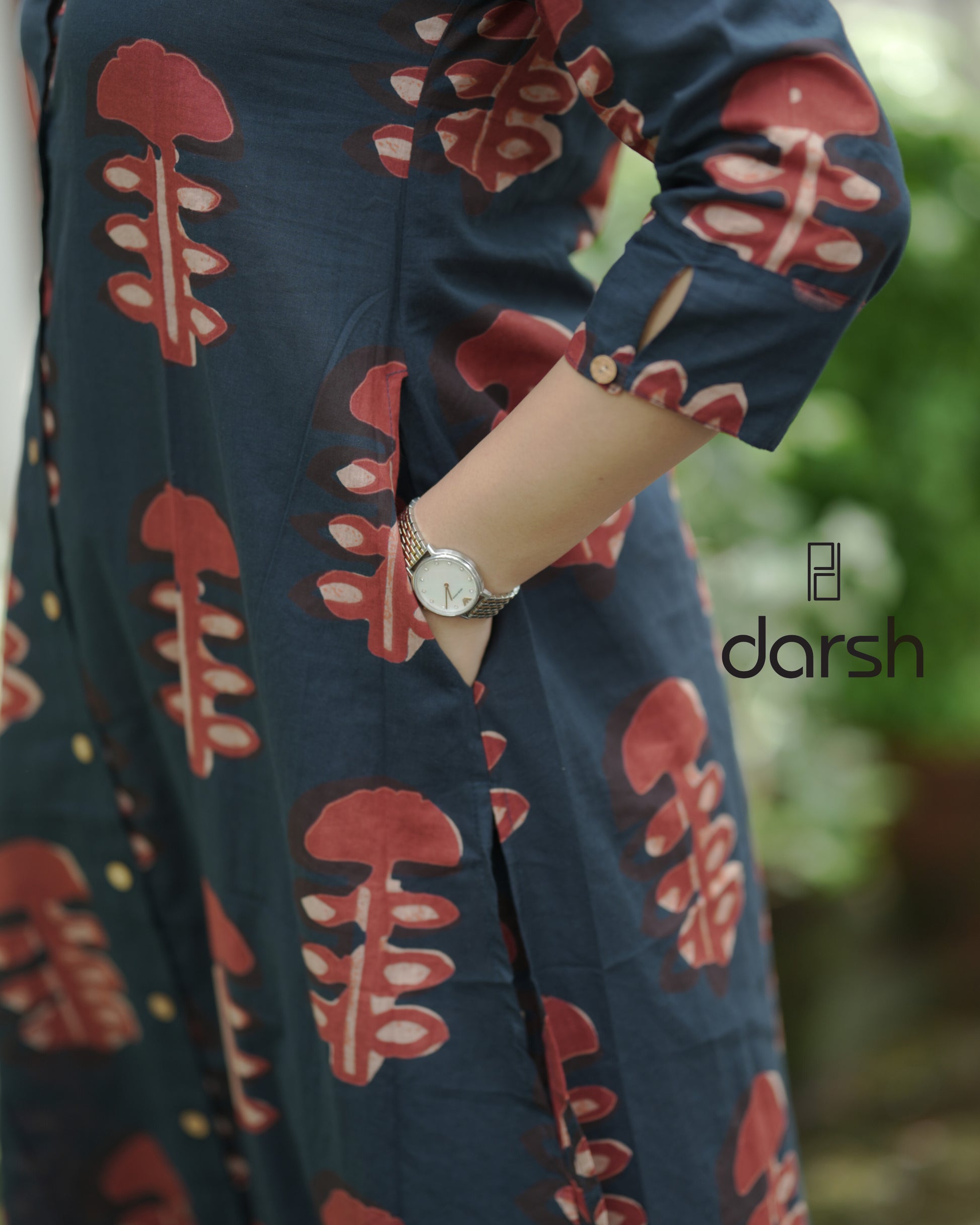 - Round neck kurta with centre buttons and back elastic border prints pants